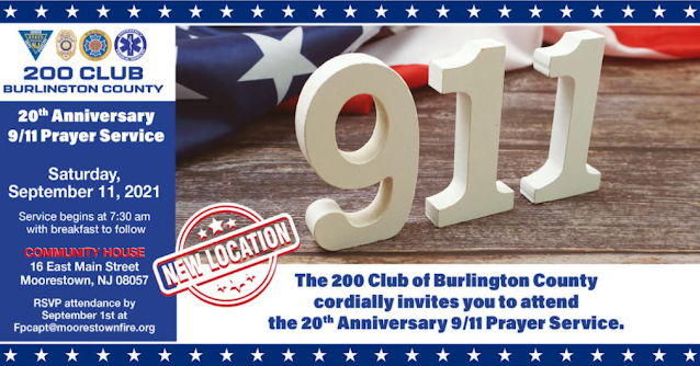BURLINGTON COUNTY LAW ENFORCEMENT 200 CLUB WILL HOLD PRAYER SERVICE TO MARK THE 20TH ANNIVERSARY OF 9/11 TERROR ATTACKS